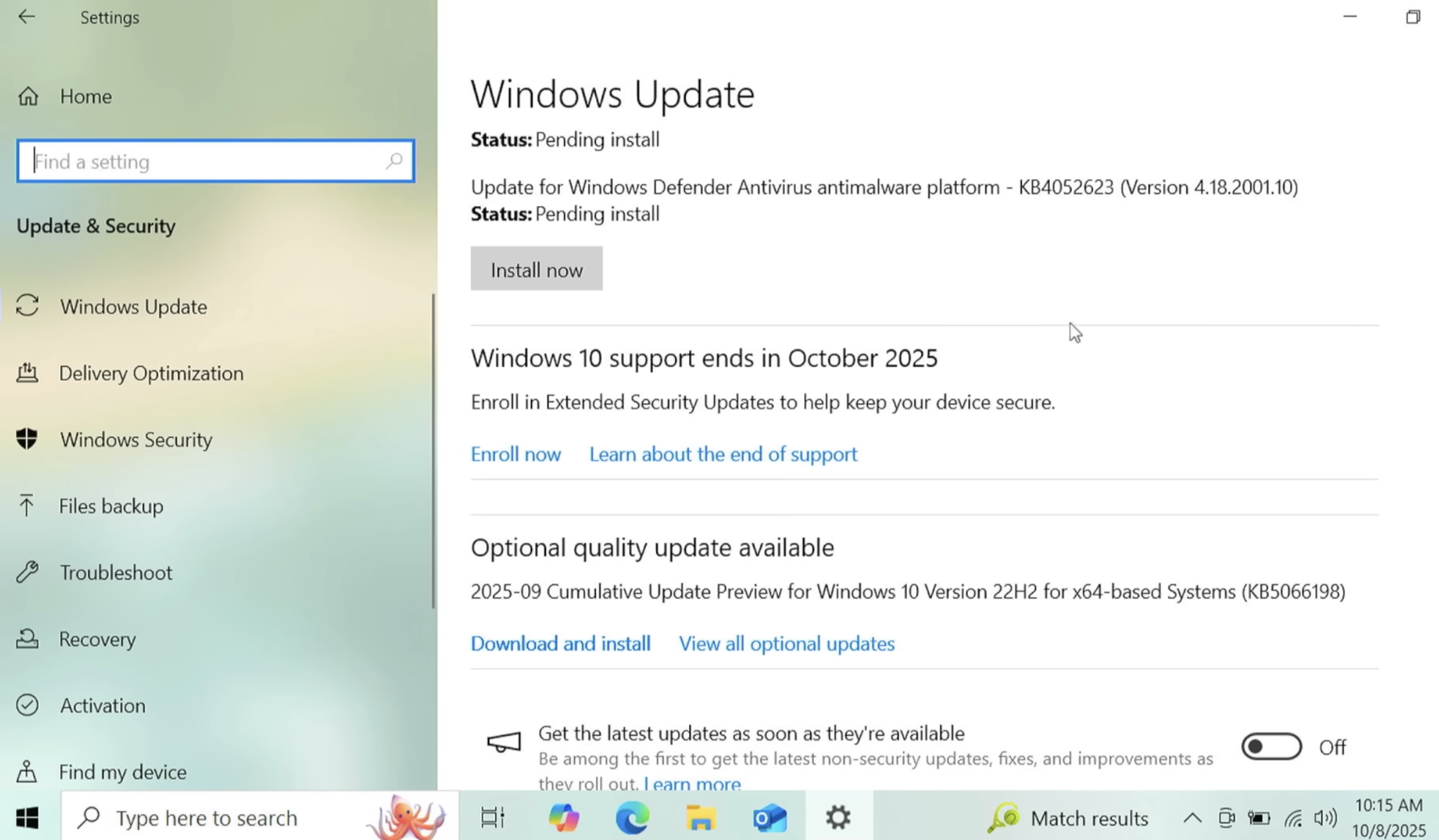 If your Windows 10 system is associated with a Microsoft account and signed in when you visit Windows Update, you should see an option to enroll in extended updates. Image: https://www.youtube.com/watch?v=SZH7MlvOoPM